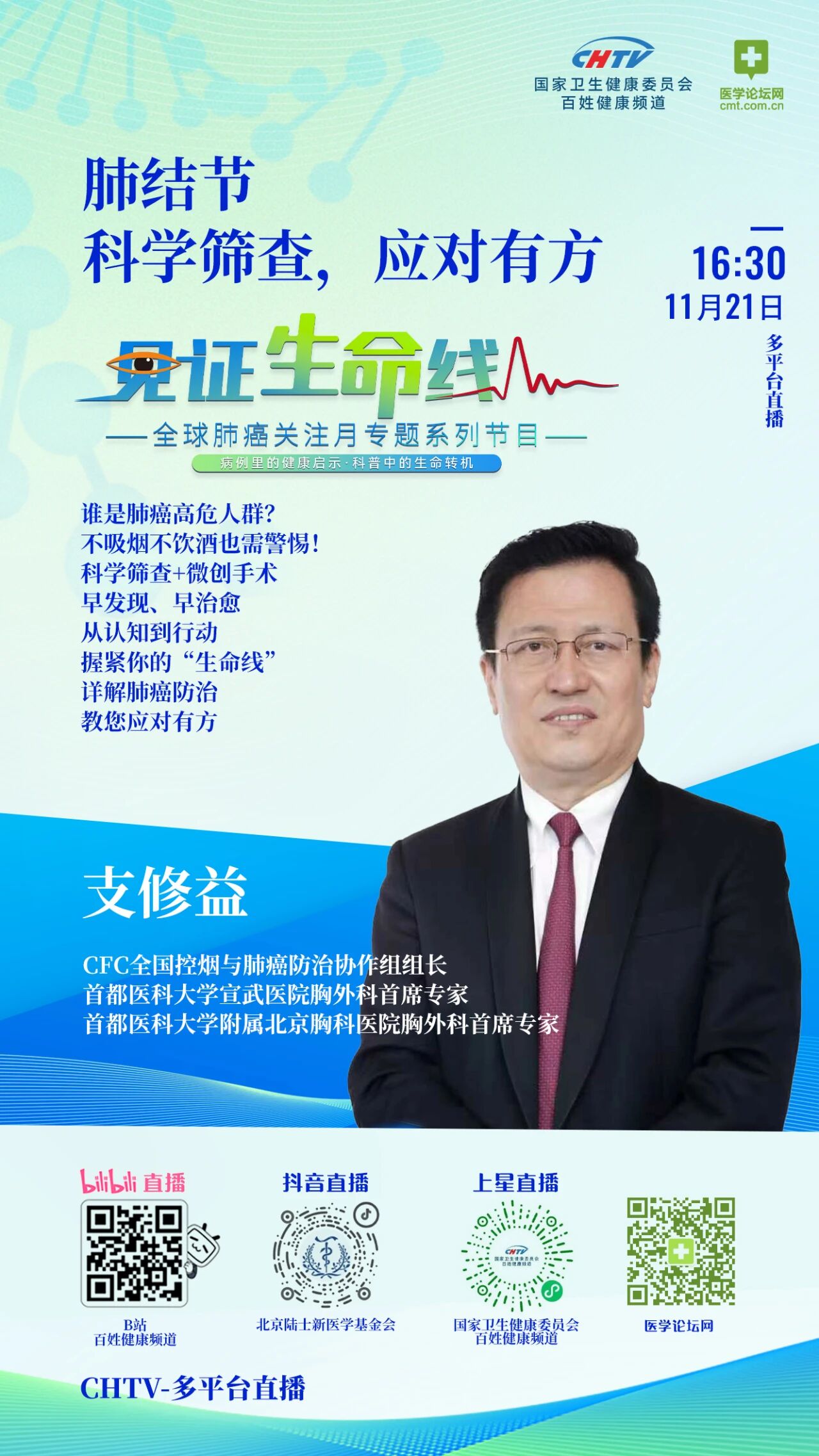 本期《見證生命線》,我們再次邀請到全國控煙與肺癌防治協作組組長,首都醫科大學宣武醫院胸外科首席專家,首都醫科大學附屬北京胸科醫院胸外科首席專家支修益教授,繼續用真實的臨床病例,為您帶來一份清晰、實用的“生命線”行動指南。
