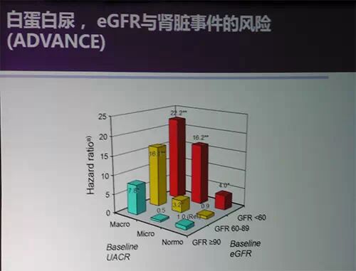 眾所周知,糖尿病腎病可增加心血管事件及死亡風險,蛋白尿及腎小球濾過率與腎髒事件風險具有顯著相關性(圖1),是可預測長期腎功能的下降,是預測2型糖尿病患者腎功能下降的傳統預測因素。當然,兩者作為預測因素預測糖尿病腎病的價值似乎並不完美。近幾年研究顯示,其他指標(如半胱氨酸蛋白酶抑製物C、成骨蛋白、轉化生長因子β)預測糖尿病患者腎功能下降的作用至少可近似於甚至優於上述兩項指標。目前的問題是,鑒於臨床實踐與臨床研究存在差異,這些新預測指標能否在傳統預測因素的基礎上提供額外的預測價值,進而改善臨床實踐。另外,很多這些新預測指標的測量成本通常非常昂貴。因此,我認為目前我們還是應該立足於更好地應用現有預測因素。展望未來,我們將有望探索出更好地預測腎功能的新方法。