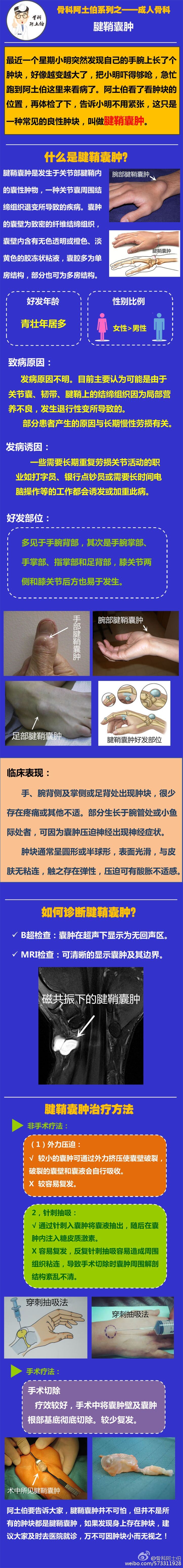 許多朋友都聽說過,可究竟腱鞘囊腫是什麼疾病?需要怎麼治療呢?請看下圖。